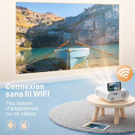 Проєктор підтримує Wi-Fi і Bluetooth, тож ви можете без зайвих кабелів транслювати відео зі смартфонів, планшетів чи ноутбуків. Крім того, пристрій оснащено всіма необхідними інтерфейсами: HDMI, USB, AV, AUX (3.5 мм), що робить його універсальним для будь-яких джерел сигналу — від ігрових приставок до медіаплеєрів.