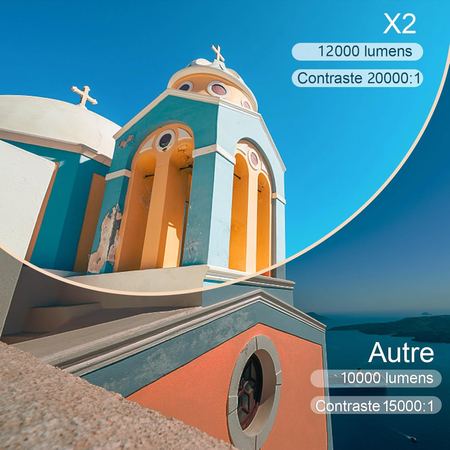 З яскравістю 7000 люменів TOPTRO X2 дозволяє насолоджуватись відео не лише в затемнених кімнатах, а й при помірному освітленні. Високий рівень контрастності 9000:1 гарантує глибокий чорний, яскравий білий та виразну кольорову палітру для кожного кадру.