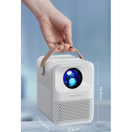 Проєктор WOLFANG WP01 має компактні розміри важить лише 1 кг, що робить його зручним для транспортування. Завдяки унікальній ручці його можна переносити однією рукою, що значно спрощує використання в дорозі. Енергоефективність також є великою перевагою – споживана потужність становить лише 55 Вт, що робить пристрій екологічно чистим та економним. Завдяки ефективній системі розсіювання тепла він залишається охолодженим навіть під час тривалого використання, забезпечуючи стабільну роботу без перегріву.