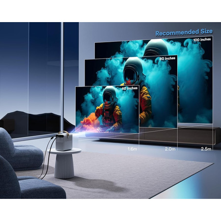 WOLFANG WP01 підтримує корекцію трапецієподібних спотворень ±40°, що дозволяє легко налаштовувати зображення для ідеальної геометрії. Проекційний екран можна налаштувати в діапазоні від 40 до 200 дюймів, створюючи ефект занурення. Функція масштабування 50% дає змогу змінювати розмір екрану без фізичного переміщення проєктора, що особливо зручно для використання в обмеженому просторі. Така універсальність дозволяє насолоджуватися якісним зображенням у будь-яких умовах.