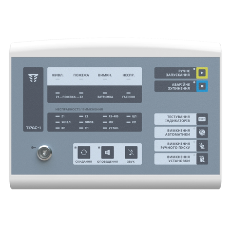 Сучасний прилад для керування одним напрямком пожежогасіння (газове, порошкове, аерозольне). Функціональні можливості та універсальність ПУіЗ «Тірас-1» роблять його вдалим рішенням для реалізації систем пожежогасіння будь-якого розміру. Автономна робота або у складі системи пожежної сигналізації; Управління одним напрямком пожежогасіння; Контроль пуску та стану установки пожежогасіння; Дві власних зони пожежної сигналізації; Формування затримки на евакуацію; Увімкнення оповіщення про запуск гасіння; Ручне запускання та аварійне зупинення пожежогасіння за допомогою виносних пристроїв ПАЗ/ПРЗ або вбудованих на корпусі кнопок.