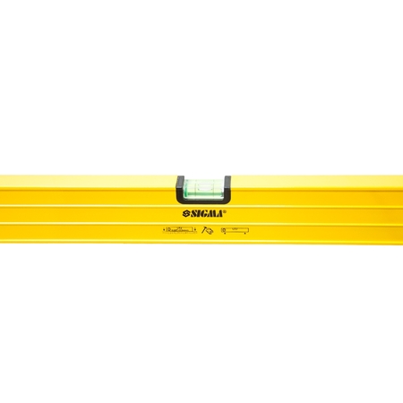 Рівень з поворотною капсулою, 2 рукоятки 120см SIGMA (3723121) призначений для визначення горизонтального і вертикального розташування поверхонь, а також горизонтальності підлоги, балок і прогонів. Виготовлений з алюмінію, має лінійку і три ампули. Допустиме відхилення: 0.057 градуса (що при правильному розташуванні еквівалентно 1.0мм на 1м).