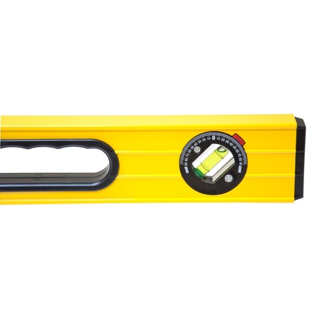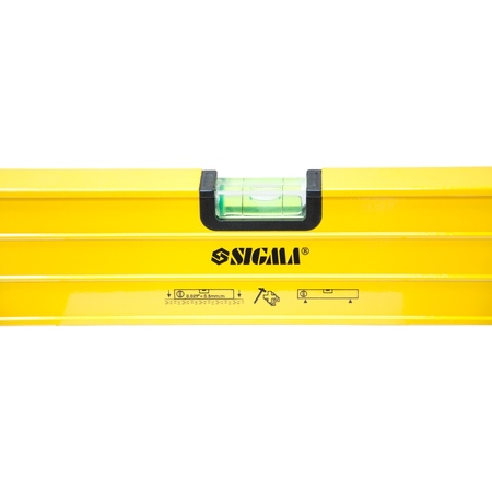 Рівень з поворотною капсулою, 2 рукоятки 80см SIGMA (3723081) призначений для визначення горизонтального і вертикального розташування поверхонь, а також горизонтальності підлоги, балок і прогонів. Виготовлений з алюмінію, має лінійку і три ампули. Допустиме відхилення: 0.057 градуса (що при правильному розташуванні еквівалентно 1.0мм на 1м).