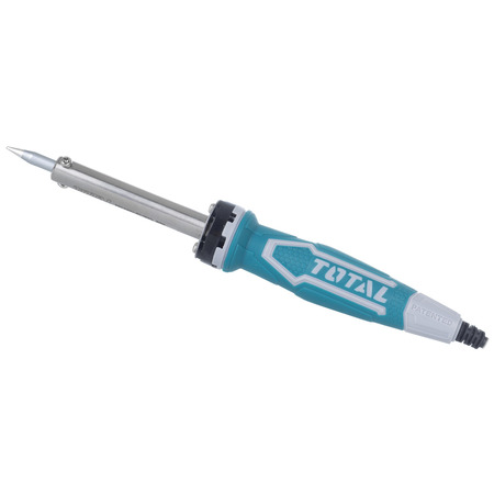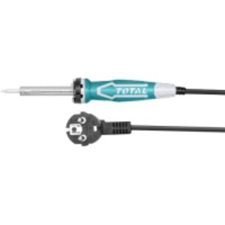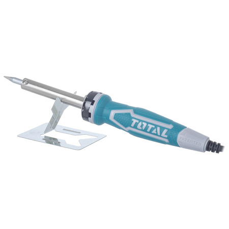 Електричний паяльник TOTAL TET1406 дозволяє з'єднувати між собою різні металеві деталі шляхом споювання з використанням спеціальних припоїв. Даний прилад має потужність 40Вт і нагрівається до робочої температури за 3-5 хвилин. Паяльник оснащений прямим контактним наконечником, який можна легко замінити в разі необхідності. Для максимальної зручності та безпеки використання паяльник оснащений відкидним опорним пристроєм.