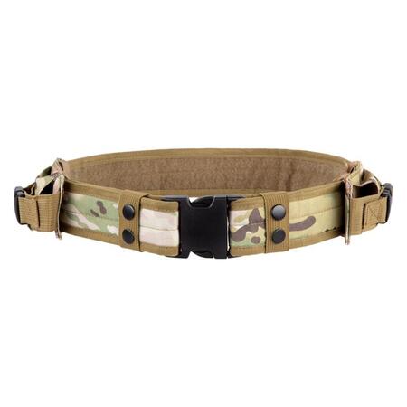 Тактический ремень, изготовленный в цвете камуфляж (Camo), имеет продуманную конструкцию, благодаря чему надежно фиксируется, предотвращая произвольное прокручивание. Ремень многофункциональный: оснащен двумя креплениями/чехлами на застежке Velcro, к которым можно положить небольшой нож или мультитул. Размер чехлов составляет 14 × 6 × 5 см. Также предусмотрена возможность прикрепить дополнительное навесное снаряжение или элементы разгрузочных систем. Кроме прочего, при необходимости изделие можно использовать как спасательный ремень или жгут для перевязки, ведь он имеет достаточную для этого длину (123 см). Небольшой вес (0,24 кг) никак не сказывается на эксплуатационных свойствах модели. Во время войны защитникам приходится нести на себе много разного и тяжелого снаряжения: броню, оружие, БК. Если не подойти к задаче размещения с умом, то позвоночник скоро напомнит о себе. При этих условиях пригодится тактический ремень, предназначенный не только держать штаны.