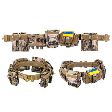 Тип: тактический ремень; Назначение: для фиксации штанов, для размещения подсумок; Длина ремня: 121 см; Количество подсумков: 5; Габариты подсумков: 9.5x5x3; Материал: полиэстер, нейлон; Цвет: камуфляж; Вес: 1 кг.
