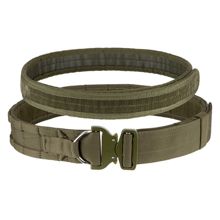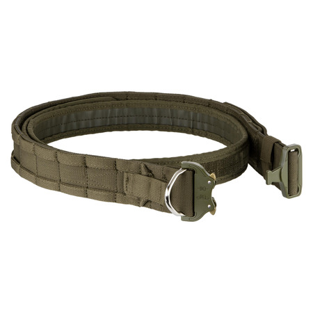 Ремень состоит из двух частей – внутренней и внешней. Внутреннюю часть напрямую заправляют в штаны, а на другую навешивают подсумки с помощью строп MOLLE. Система MOLLE – это ряды пазов и выступов, которые нужно застегивать для закрепления аксессуаров. Эта часть крепится к первой липкой застежке (по всей длине ремня) и закрывается пряжкой с кнопками. Благодаря возможности регулировки по длине вторую часть ремня можно подстроить под любое телосложение. Конструкцией ремня предусмотрена надежная застежка Fastex, благодаря чему изделие комфортно, просто и в любом случае случайно не расстегнется.
