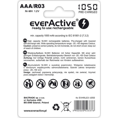 Аккумуляторы бренда everActive обладают характеристиками, близкими к лидерам рынка за разумную цену. Польский бренд изготавливается по заказу на фабрике в Китае.