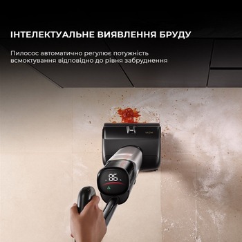Светодиодная подсветка на головке щетки обнаруживает скрытую грязь, такой как шерсть домашних животных и мелкая пыль, обеспечивая точную очистку даже темных уголках Вашего дома.