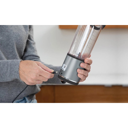 На бутылке есть удобная мерная шкала для точного измерения ингредиентов. Минимальный и максимальный уровень наполнения жидкостью также указаны отдельными метками. Дополнительный комфорт создает светодиодная подсветка кнопки, которая информирует вас о состоянии батареи и режиме работы лезвия. Эта интеллектуальная система позволяет вам эффективно контролировать работу блендера и получать изысканные напитки.