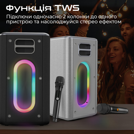 Этот товар идеально подойдет для любителей вечеринок, караоке и просто для всех, кто ценит качество звука и удобство в одном устройстве. Заказывайте сейчас с доставкой по Украине и наслаждайтесь музыкой в любом месте!