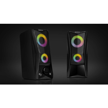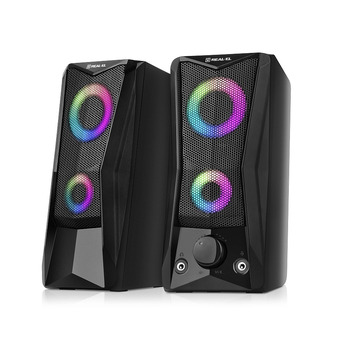 REAL-EL S-107 имеет удобный регулятор громкости и дополнительные разъемы для подключения наушников и микрофона. Яркая подсветка придает динамичности и создает приятную атмосферу во время работы на компьютере или отдыха с любимой музыкой.