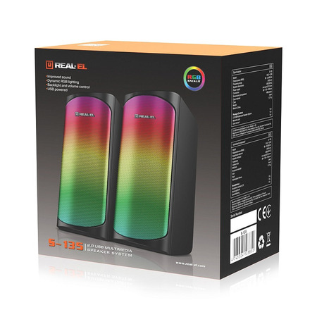 REAL-EL S-135 Black идеально подходит для дома, офиса, учебного заведения или геймерского пространства. Этот динамичный аксессуар дополнит ваши звуковые потребности и принесет удовольствие от использования.