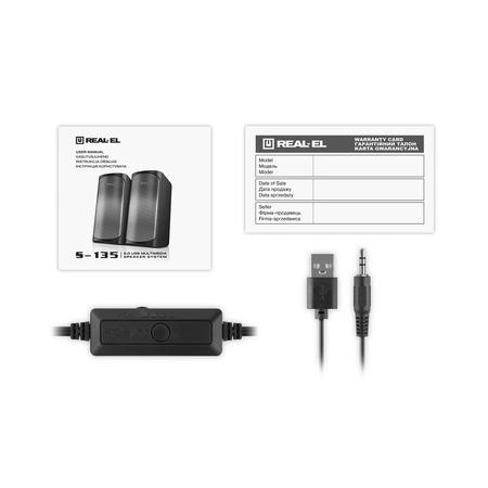 - Легкая и доступная: благодаря встроенному усилителю и акустическому кабелю, REAL-EL S-135 Black легко подключается к любому источнику аудиосигнала.