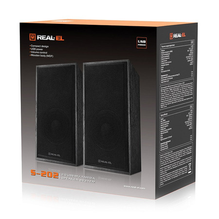 REAL-EL S-202 — компактная мультимедийная акустическая система с насыщенным звучанием.