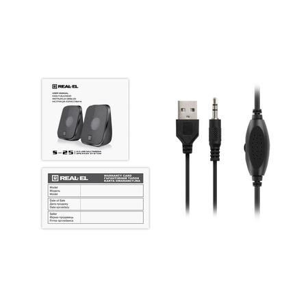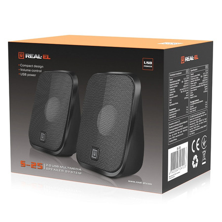 REAL-EL S-25 — стильное и практичное решение для ежедневного использования. Мультимедийная акустическая система REAL-EL S-25 – компактное и доступное решение для озвучивания компьютера или ноутбука. Благодаря улучшенной форме корпуса с изысканным дизайном акустика не только гармонично смотрится на рабочем столе, но и обеспечивает лучшие акустические свойства.