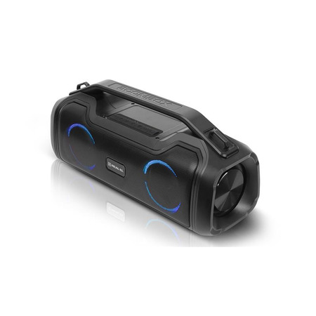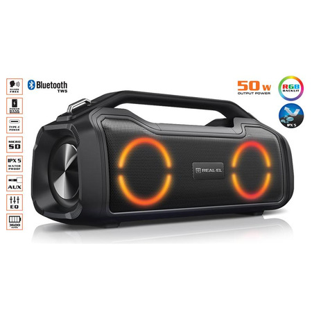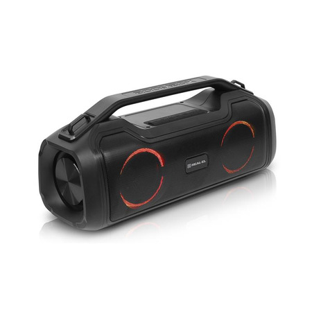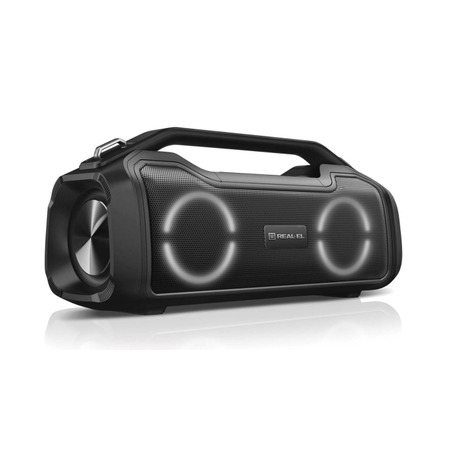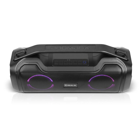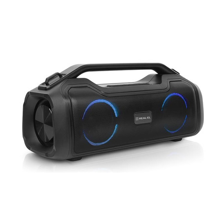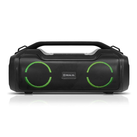 REAL-EL X-747 это стильный, мощный бумбокс с RGB подсветкой, функцией TWS и встроенным эквалайзером.
