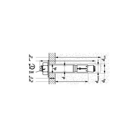 Резьба d M10; Диаметр анкера и бура d(nom)=d(0) 15 мм.; Длина L 115 мм.; Толщина закрепляемого материала t(fix) 15 мм.; Мин. глубина установки h(ef) 70 мм.; Сжатая зона бетона C20/25, вырыв N 14.3 кН; Растянутая зона бетона С20/25, вырыв N 7.6 кН; Бетон С20/25, HL-B (SZ-B) срез V 20.7 кН; Изгибающий момент M 34.3 Нм; Сжатая зона бетона расстояние между анкерами s 213 мм.; Сжатая зона бетона расстояние от края c 90 мм.; Растянутая зона расстояние между анкерами s 106 мм.; Растянутая зона расстояние от края c 355 мм.; Мин. межосевое расстояние при краевом расстоянии s(min)/c 70/120 мм.; Мин. краевое расстояние при межосевом расстоянии c(min)/s 70/175 мм.; Мин. толщина базового материала h(min) 140 мм.; Размер ключа HL-B (SZ-B) SW 17; Момент затяжки T(inst) 50 Нм