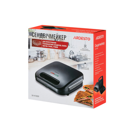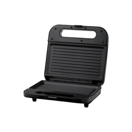 Антипригарное покрытие обеспечивает легкую очистку пластин и возможность приготовления без добавления масла, а для удобной транспортировки предусмотрено ручку с фиксатором. Индикаторы на верхней панели отражают готовность устройства к приготовлению. Сэндвичмейкер черного цвета мощностью 700 Вт и одной пластиной для приготовления разнообразных сэндвичей, панини, овощей гриль и грибов.