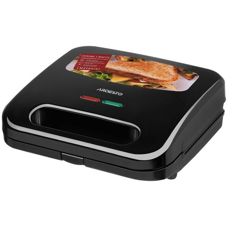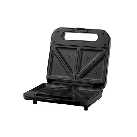 Антипригарное покрытие обеспечивает легкую очистку пластин и возможность приготовления без добавления масла, а для удобной транспортировки предусмотрено ручку с фиксатором. Индикаторы на верхней панели отражают готовность устройства к приготовлению. Сэндвичмейкер черного цвета мощностью 700 Вт и двумя пластинами для приготовления разнообразных сэндвичей.