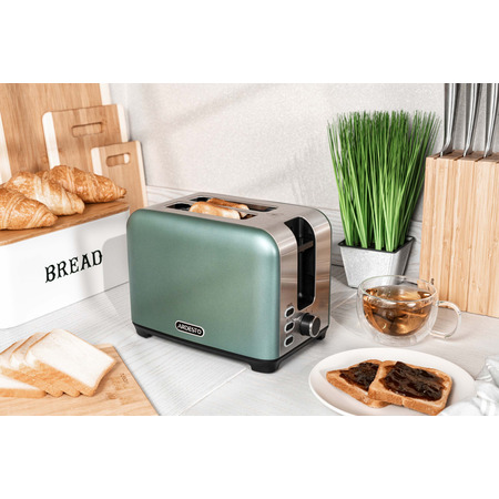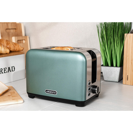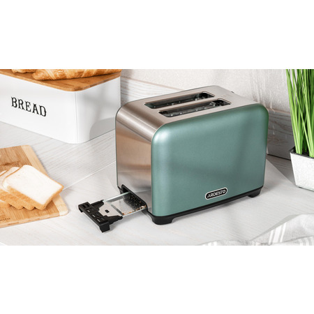 С тостером ARDESTO T-F400G можно каждый день баловать семью хрустящими и аппетитными ломтиками подсушенного хлеба с вареньем, сыром или сливочным маслом. Корпус устройства изготовлен из нержавеющей стали. Модель имеет вставки трендового мятного цвета, благодаря которым станет украшением кухни.