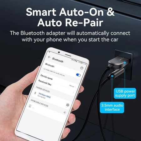 Автомобільний аудіоприймач AUX TRS 3.5мм USB Bluetooth 5.0 Coiled Cable 1.5M Gray Zinc Alloy - це високоякісний пристрій, призначений для підключення до автомобільної аудіосистеми. Завдяки підтримці інтерфейсів AUX TRS 3.5мм, USB і Bluetooth 5.0, цей аудіоприймач забезпечує безперервний потік звуку з будь-якого сумісного пристрою. <br><br>Кабель довжиною 1.5 метра забезпечує зручне підключення і можливість розташування пристроїв в автомобілі зручним для вас способом. Виготовлений з високоякісного цинкового сплаву, аудіоприймач має міцний корпус, що гарантує довговічність і надійність пристрою в експлуатації. <br><br>Завдяки своїм компактним розмірам і сучасному дизайну в сірому кольорі, цей аудіоприймач відмінно впишеться в інтер'єр будь-якого автомобіля і стане незамінним помічником для отримання якісного звуку під час подорожей.