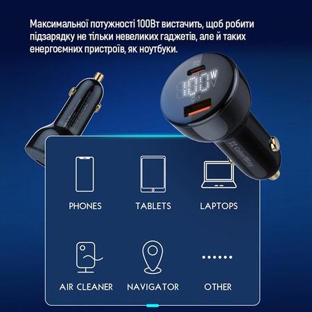 Автомобильное зарядное устройство Colorway Power Delivery Port PPS USB (USB-A + USB-C) (100W) - отличный вариант компактного и мощного зарядного устройства для использования в машине. Устройство имеет два порта USB-А и Type-C, поддерживающими технологию быстрой зарядки Quick Charge 3.0/4.0+, и USB-C PD с поддержкой протоколов PD (Power Delivery) 2.0/3.0, 100W PPS; BC1.2 DCP 5V-1.5A; APPLE 5V-2.4A; APPLE FAST CHARGE; SAMSUNG 5V-2A/AFC/SFC; QC2.0/3.0/4.0+; HUAWEI FCP/SCP, VOOC.) PPS/AFC/FCP/ Apple - быстрая зарядка. Умная зарядка быстро и безопасно может заряжать до 2 мобильных устройств одновременно: смартфонов, планшетов, устройств внешних батарей и многих других. Интеллектуальная микросхема USB Auto ID определяет тип подключённого устройства, регулирует напряжение и силу потока, обеспечивает быструю зарядку и высокую совместимость с устройствами большинства брендов. Максимальной мощности 100Вт хватит, чтобы производить подзарядку не только небольших гаджетов, но и таких энергоёмких устройств, как ноутбуки. Устройство имеет высокую безопасность – защиту от перенапряжения, перегрузки, короткого замыкания, перегрева, крепкий и противопожарный корпус.