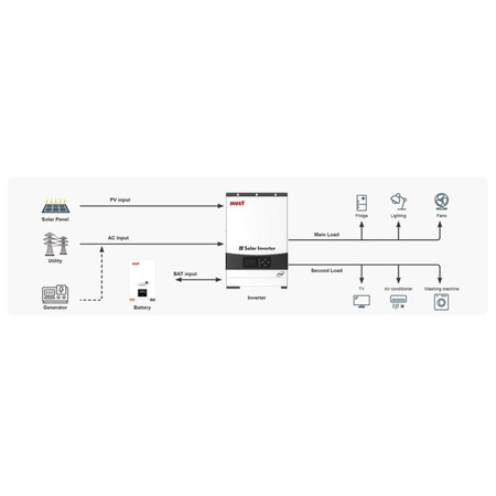 Инвертор Must PV1900 EXP — это многофункциональный инвертор/зарядное устройство, которое объединяет функции инвертора, солнечного зарядного устройства MPPT и зарядного устройства для аккумуляторов. Это устройство обеспечивает бесперебойное питание в портативном размере, что делает его идеальным решением для использования солнечной энергии.
