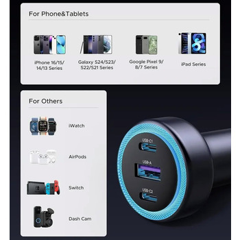 Вхід: DC 12-24V/4A; Вихід USB-C (1/2): 5V/3A, 9V/3A, 12V/2.5A (30W Max), PPS 5V–11V/2.75A;