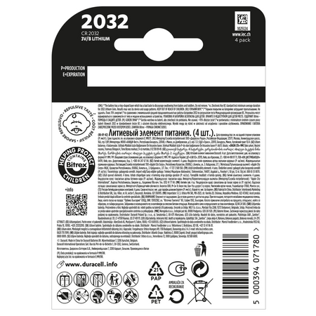 Спеціальні літієві батарейки типу «таблетка» Duracell Specialty 2032 виготовлені з літію високої чистоти та забезпечують на 70% довший термін служби* (* порівняно з мінімальним середнім терміном служби літієвих батарейок 2032 у стандартному тесті IEC з використанням електронного ключа.