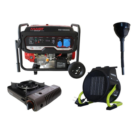 <p><span style="color: #222222; font-family: 'Open Sans', sans-serif; background-color: #f9f9f9;">Генератор бензиновий MAST GROUP RD10800E підходить для житлових будинків, гаражів, та інших місць, де необхідно забезпечити додаткове джерело електропостачання. Цей генератор має потужність 8.8 кВт і надійний бензиновий двигун, що забезпечує стабільну роботу в будь-яких умовах.</span><br style="color: #222222; font-family: 'Open Sans', sans-serif; background-color: #f9f9f9;" /><br style="color: #222222; font-family: 'Open Sans', sans-serif; background-color: #f9f9f9;" /><span style="color: #222222; font-family: 'Open Sans', sans-serif; background-color: #f9f9f9;">Газова плитка Orcamp CK-505 - це компактна та зручна газова плитка, яка ідеально підходить для використання у кемпінгу, на пікніках або в будинку. Вона має вбудований палник і може працювати на різних типах газу, що дає більше гнучкості у використанні.</span><br style="color: #222222; font-family: 'Open Sans', sans-serif; background-color: #f9f9f9;" /><br style="color: #222222; font-family: 'Open Sans', sans-serif; background-color: #f9f9f9;" /><span style="color: #222222; font-family: 'Open Sans', sans-serif; background-color: #f9f9f9;">Електричний обігрівач Gardyer HE2000 - це потужний обігрівач з вбудованим термостатом, який забезпечить комфортну температуру в приміщенні. Цей обігрівач може бути використаний як додаткове джерело тепла в будинку або офісі.</span><br style="color: #222222; font-family: 'Open Sans', sans-serif; background-color: #f9f9f9;" /><br style="color: #222222; font-family: 'Open Sans', sans-serif; background-color: #f9f9f9;" /><span style="color: #222222; font-family: 'Open Sans', sans-serif; background-color: #f9f9f9;">Разом ці три пристрої створять комфортні умови для життя та роботи навіть у випадку відключення електропостачання або у віддалених місцях, де не завжди доступне централізоване постачання газу або електроенергії.</span></p>