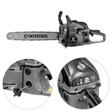 Бензопила INTERTOOL DT-2208 з двотактним двигуном, потужністю 2,4 кВт, підійде для роботи в саду, на ділянці, а також буде корисною на будівництві та під час заготівлі дров, для сезонних робіт. Ідеальна для домовласників, майстрів-аматорів, а також професіоналів своєї справи.