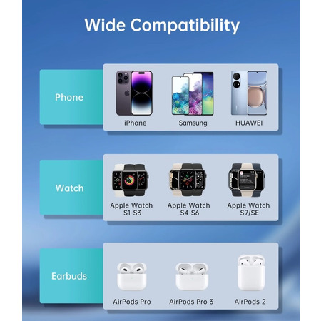Благодаря совместимости с устройствами Qi Choetech T600 поддерживает широкий спектр популярных смартфонов, умных часов и наушников. Независимо от того, какие устройства у вас есть, вы можете быть уверены, что Choetech T600 удовлетворит ваши потребности в зарядке.