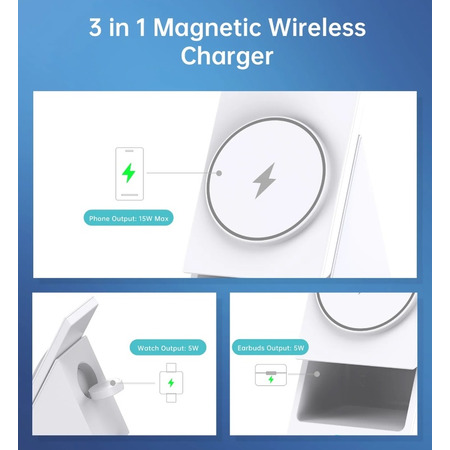 Представляем Choetech T600 — революционное магнитное беспроводное зарядное устройство 3-в-1, которое сделает использование ваших устройств еще более удобным и эффективным. Это сочетание функциональности, элегантности и инноваций. Благодаря ему вы можете одновременно заряжать смартфоны, умные часы и наушники, получая максимальную эффективность и эстетичный дизайн. Познакомьтесь с Choetech T600 и поднимите беспроводную зарядку на новый уровень!