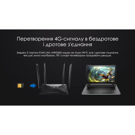 4G LTE-роутер Netis MW5360 оснащен модулем 4G LTE, позволяющим выходить в Интернет с помощью SIM-карты. Благодаря отдельным антенным системам Wi-Fi и уникальной конструкции портов есть возможность размещать съемные 4G антенны где угодно внутри или за пределами вашего дома, что обеспечивает лучшую скорость 4G и лучшую производительность Wi-Fi. MW5360 также имеет проводной порт WAN, позволяющий использовать устройство в качестве обычного беспроводного маршрутизатора.
