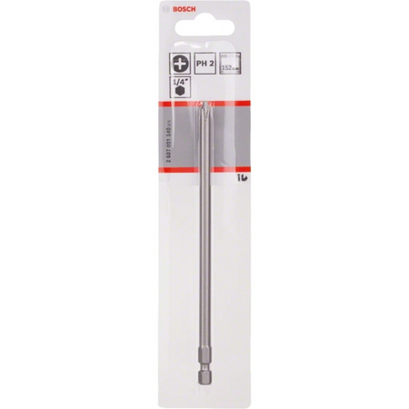 Бита Bosch Extra-Hart PH2 длиной 152 мм с наружным шестигранником ¼ дюйма на хвостовике. Изготовленные из высококачественной стали с повышенной твердостью, биты отличаются усиленной прочностью и износостойкостью. Особый дизайн рабочей части сглаживает наибольший крутящий момент.