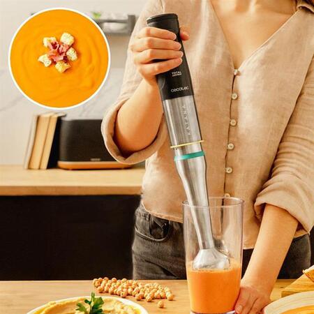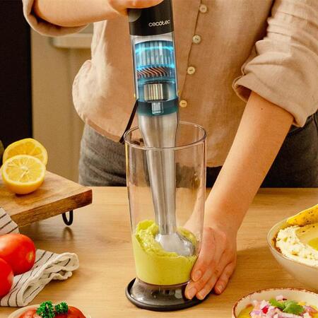 Легко достигайте идеальной текстуры блюд благодаря движению лезвий вверх и вниз с блендером CECOTEC, что повышает эффективность смешивания и предотвращает разбрызгивание во время работы.