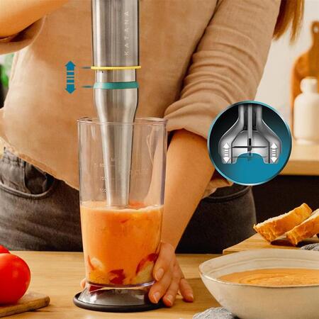 Погружной блендер CECOTEC Katana вместе с системой из 4 лезвий с черным титановым покрытием увеличивает срок эксплуатации и остроту, позволяя снова и снова измельчать любые ингредиенты без потери эффективности.