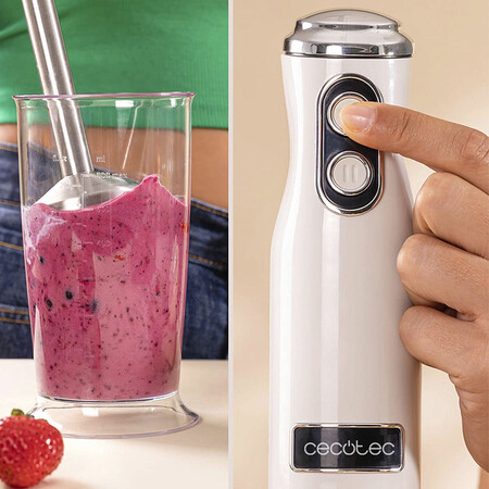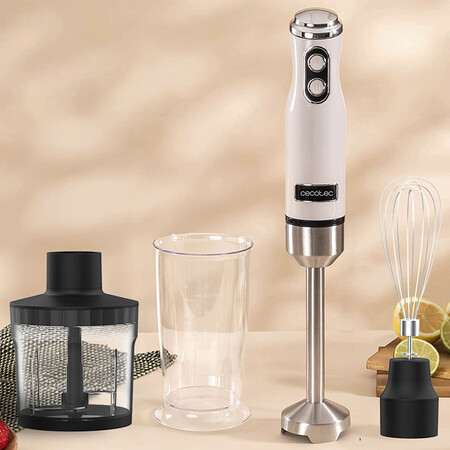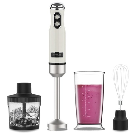 Комбинируйте использование блендера Cecotec, получайте лучшие кремы и текстуры благодаря достаточно большому набору аксессуаров в комплекте. Стакан, венчик и измельчитель обеспечивают максимальное удобство и практичность на Вашей кухне.