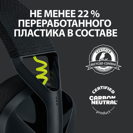 ИЗГОТОВЛЕНО ИЗ ПЕРЕРАБОТАННОГО ПЛАСТИКА. Пластиковые компоненты гарнитуры G435 содержат не менее 22 % сертифицированного сырья, изготовленного на основе переработанных отходов потребления, от веса.