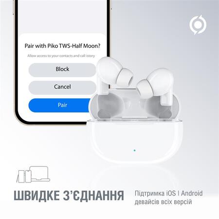 Piko TWS-HalfMoon – идеальный выбор для активного образа жизни, спорта или просто повседневного использования. Удобный дизайн обеспечивает устойчивость и комфорт в течение длительного использования, а встроенный микрофон позволяет легко принимать и совершать звонки без труда. Ловите моменты свободного слушания с беспроводными наушниками Piko TWS-HalfMoon, которые наполнят личное пространство новым звучанием!