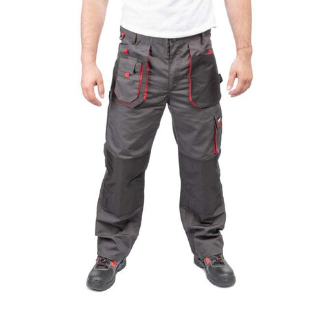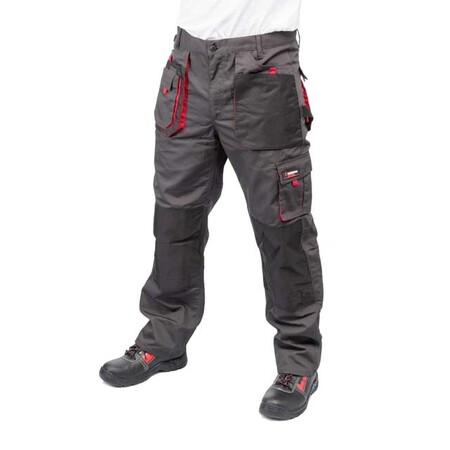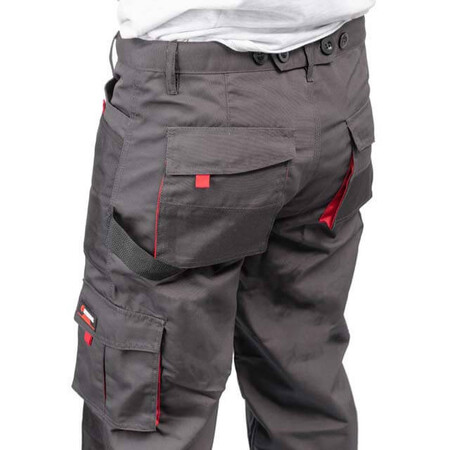 Робочі брюки темно-сірого кольору виготовлені з міцної тканини: 80% поліестер і 20% бавовна зі щільністю 260 г/м². Наявність великої кількості кишень дозволяє розвантажити руки і забезпечує швидкий доступ до підручного інструменту.