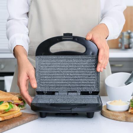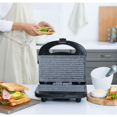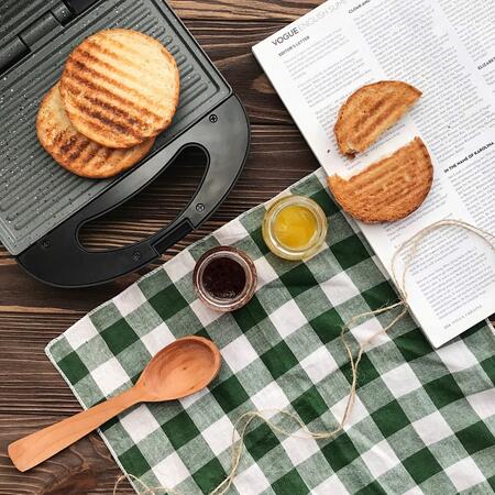 Бутербродница MG-367 обладает всеми необходимыми функциями для того, чтобы быстро приготовить вкусные и питательные сэндвичи. Одновременно в ней можно выпекать сразу по 4 сэндвича, края которых плотно спаиваются бортиками форм, надежно запирая начинку внутри. Корпус изготовлен из высококлассного термостойкого пластика черного цвета. Тип противня – поджаренный сэндвич. Нагревательный элемент мощностью в 656 Вт обеспечит быстрое и равномерное нагревание двух рабочих поверхностей с керамическим покрытием. Бутербродницы Magio очень удобны в обращении, сэндвичи не пригорают и легко извлекаются. Благодаря компактным размерам и фиксатору бутербродницу удобно хранить. На крышке имеются световые индикаторы питания и готовности к работе, что облегчает контролирование процесса приготовления.