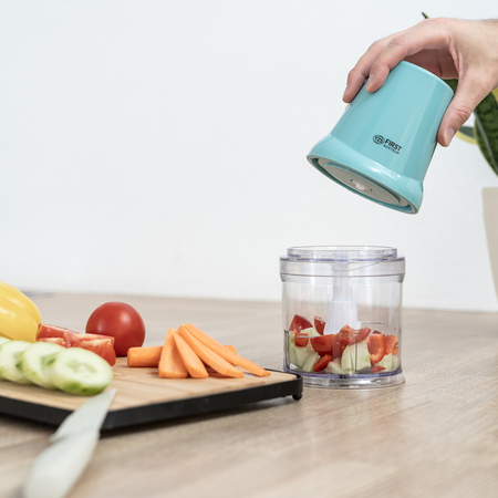 Измельчитель First FA-5114-BL весит всего 0,75 кг, что делает его легким и удобным в обращении. Его дизайн учитывает все аспекты удобства и безопасности, а также надежность в эксплуатации.