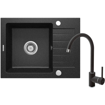 Deante Набор для кухни Zorba, гранитная мойка ZQZ_211A + смес. BEN_262M, графит-хром
