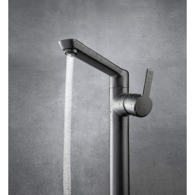 Корпус смесителя изготовлен из латуни высочайшего качества. Смеситель оборудован струйным аэратором. Силиконовый аэратор для легкого удаления известкового налета. Монтажная втулка облегчает установку смесителя. Соединительные шланги 45 см в комплекте. Инновационное, прочное и легко очищаемое титановое покрытие. Функциональный клапан click-clack в комплекте. Благодаря рычагу который сбоку облегчено поддержание чистоты носика.