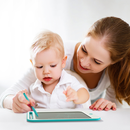 Планшет для рисования. Позволяет ребенку развивать художественные навыки. Рисует разноцветной линией, делая картинку более красочной. Диагональ экрана 12 дюймов. Имеет переключатель для фиксации картинки, чтобы нельзя было ее случайно удалить.