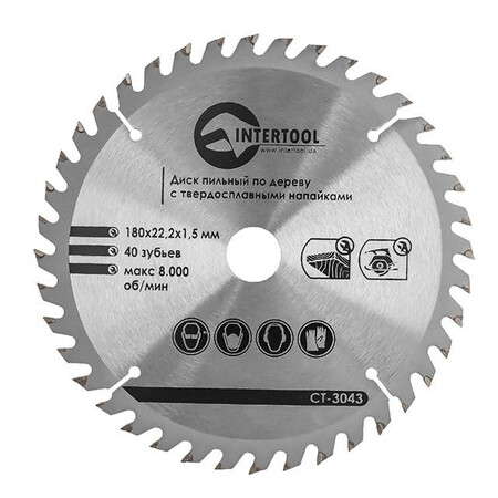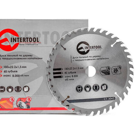 Диск пиляльний по дереву INTERTOOL CT-3043 розрахований на роботу з дисковими пилами. Завдяки використанню якісної інструментальної сталі і високоточного припою зубців, такі диски вирізняються високими експлуатаційними показниками. Самі зубці виготовляються з надміцного сплаву с точним алмазним шліфуванням. Зубці диска мають нахил, що чергується, що забезпечує точність і чистоту пропилу. Такі диски можна використовувати і для поздовжнього, і для поперечного розпилу деревини різної твердості. Так як диск має компенсаційні прорізи, він може витримувати високі температури за великої інтенсивності роботи без деформації поверхні, з мінімумом коливань, що дозволяє знизити безпосереднє навантаження на рухомі частини обладнання.
