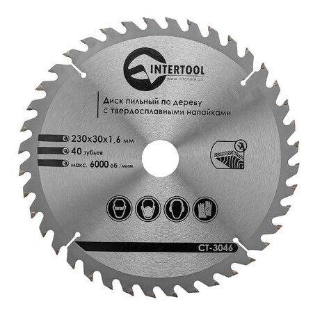 Пиляльний диск по дереву INTERTOOL CT-3046 призначений для використання з дисковими пилами. Підходить як для поздовжнього, так і для поперечного розпилювання деревини різної твердості. Діаметр диска - 230 мм, посадковий отвір - 30 мм.