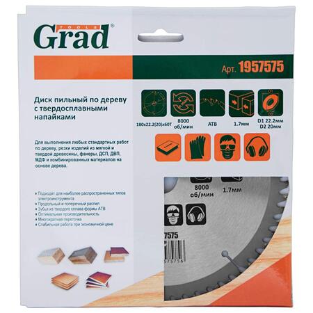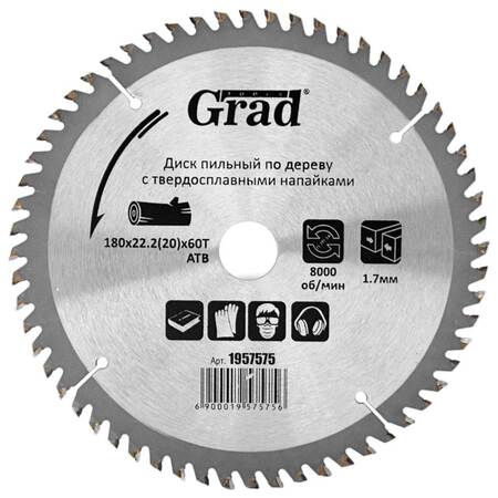 <p style="text-align: justify;"> <b>Диск пиляльний по дереву з твердосплавними напайками Ø180×22.2 (20)×60Т, 8000об/хв GRAD (1957575)</b> призначений для виконання будь-яких стандартних робіт по дереву, різання виробів з м'якої і твердої деревини, фанери, ДСП, ДВП, МДФ і комбінованих матеріалів на основі дерева. Додатковою перевагою є можливість заміни і заточування зуба. </p>